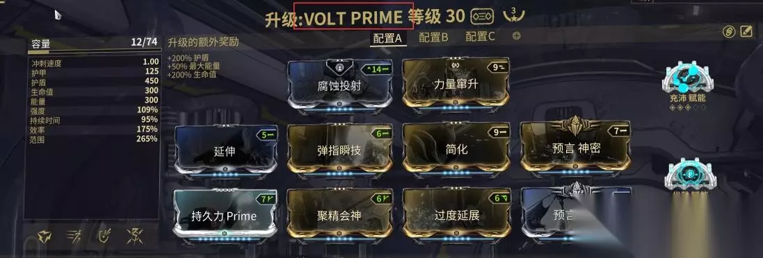 在星际战甲中,一部分的战甲的技能是可以进行大范围杀敌的,而玩家使用MOD配卡将该大范围杀伤性技能收益最大化后,便可以被称为地图炮战甲,以下便推荐目前游戏中可以做地图炮的战甲以及战甲的配卡。 1.最经典的电男,VOLT战甲和其PRIME版本,配卡如下图所示: