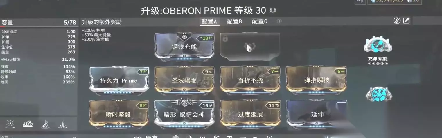 8.奶爸,OBERON以及其PRIME版本,该战甲配卡如下图所示:
