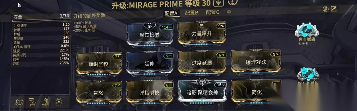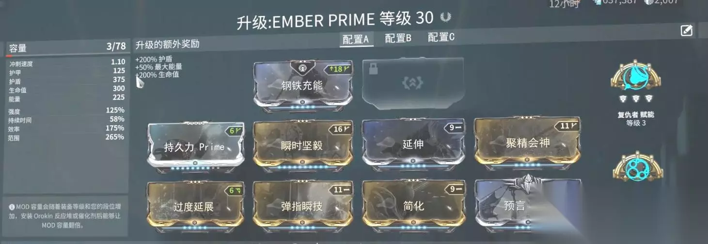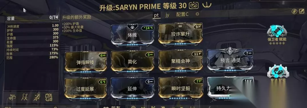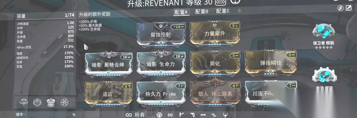 4.夜灵甲,也就是REVENANT战甲,其配卡如下图所示: