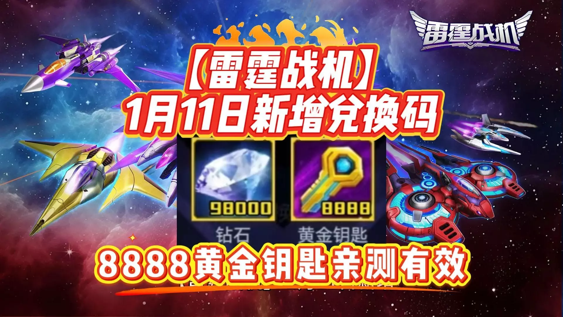 【雷霆战机】1月11日新增兑换码 8888黄金钥匙亲测有效