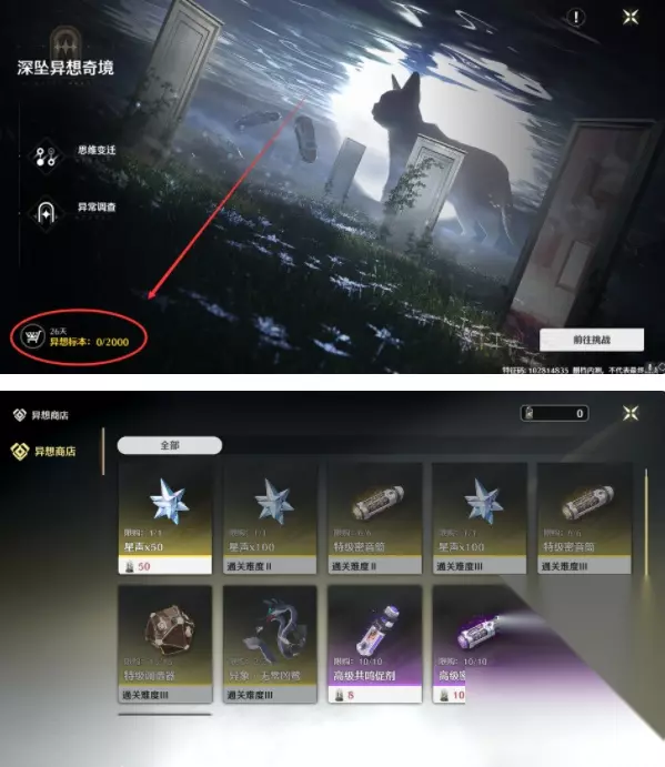 6、异象·无常凶鹭 23级解锁奇镜后在界面左下角异想标本获取,需要通过肉鸽难度3并花费300代币获取
