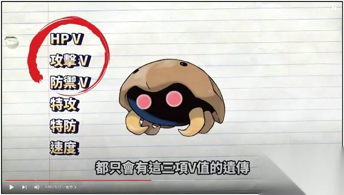 这里还需要特别注意一点 就是这条性爱产业链最开头 原本那一只化石盔也是需要做替换的 因为你这个化石个体值是3v 假设是HP 攻击 防御这三项数值 那不管怎么生都只会有这3项个体值遗传v数