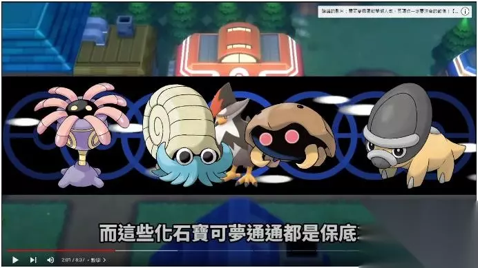 而这些化石宝可梦通通都是保底3v 并且基本上都有两个蛋群 (由左到右:触手百合 菊石兽 化石盔 盔甲龙)