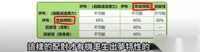 不变之石的效果是遗传携带这个道具的宝可梦性格 所以一个固执妈妈只要有携带不变之石 生下来的所有蛋都会是固执蛋 3. 梦特性 梦特性是宝可梦的隐藏特性 身为妈妈的一方必须要拥有梦特性才有机率生出梦特性的宝可梦 如果是百变怪的话则没差 另一方不论公母 只要有梦特性就好了 我们可以以下面来自神奇宝贝百科的简单表格得知 有无梦特的父母 将梦特遗传给后代的机率大小