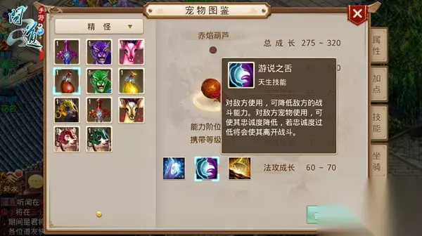 【敏宠培养推荐——赤焰葫芦】 年度版推出的11款坐骑中,赤焰葫芦拥有极高的速度成长和在PVP中用处极大的天生技能,其气血和法攻成长也不算低,是一个不错的敏宠 优势:高速度以及完美的pvp技能(十万火急可以提升己方单人的速度,乾坤罩可以使己方单人反弹对方的物理攻击一次,游说之舌则可以降低对方角色的战斗能力和宠物的忠诚度) 加点:4敏(抗点抗冰冻次遗忘) 妖石推荐:速度,防御,气血 天书推荐:仙风,云体,尽忠 玩家可根据自身情况进行点化、幻化(速度1-3次)