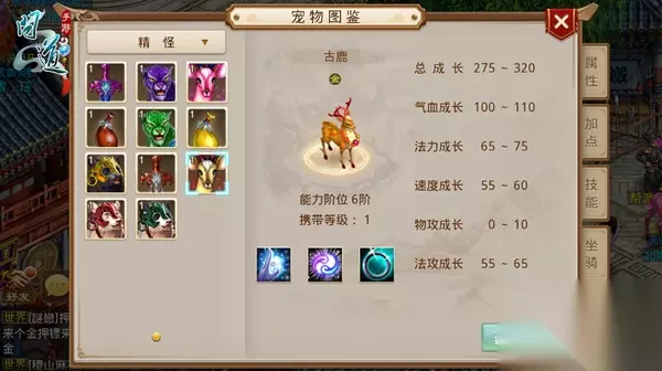 【体宠培养推荐——幻鹿】 幻鹿拥有坐骑中最高的气血成长,放眼所有宠物也是气血成长最高的存在,在PVE挑战超级大BOSS等高难度对战中作为体宠来抗敌方的大招是十分好用的,超高的气血可以保证宠物不被秒掉,从而为拉人反攻提供了可能。 优势:气血成长110 加点:4体(抗点抗冰冻次遗忘) 妖石推荐:速度,防御,气血 天书推荐:仙风,云体,尽忠 玩家可根据自身情况进行点化、幻化(气血1-3次)