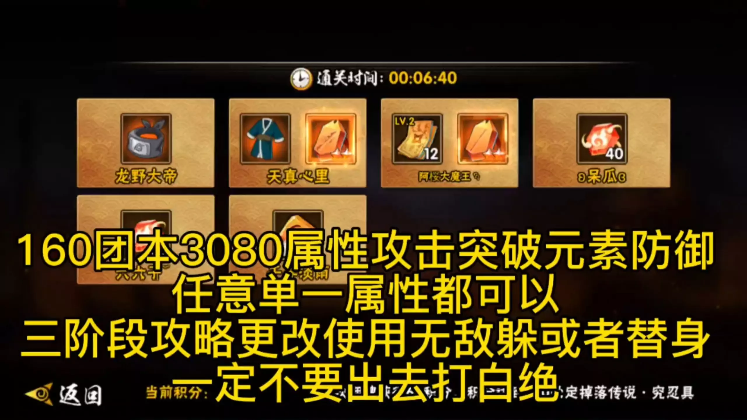 MMORPG 160团本为元素防,3080属性攻击突破,三阶段更改打法,千万不要去打白绝。