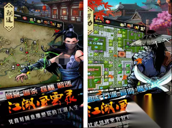 这款融入了动作元素的游戏,既能帮助你看到三国时期的历史人物,可通过对这些武将操控的方式,展开一段充满着动作的游戏体验。既能利用与好友组队的方式,来完成闯关玩法,更支持实时切磋对战。在三国乱世中,如果你想要在不同的战场当中取得胜利,也要注重武将的选择以及操控方式,仿佛回到了街机的黄金时代。 》》》》》#三国战纪2#《《《《《 5、《江湖风云录》
