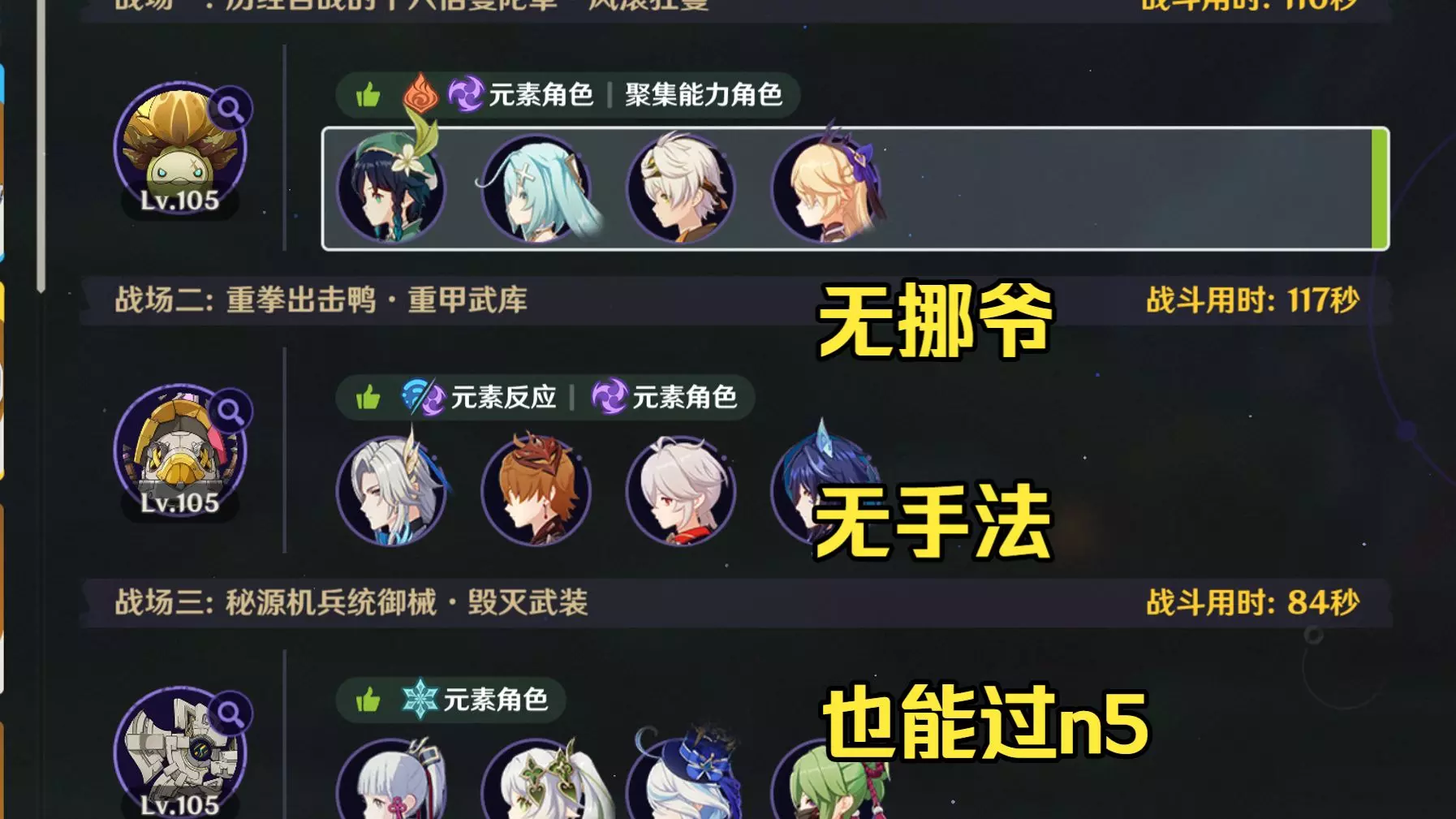 看了下难度5攻略基本上都带了挪爷,但是这期有难度的实际上是没有挪爷的玩家 于是自己做了一期无挪爷的难度5攻略 也是凹了挺久的,抄作业的建议不要低于视频里的配置 …