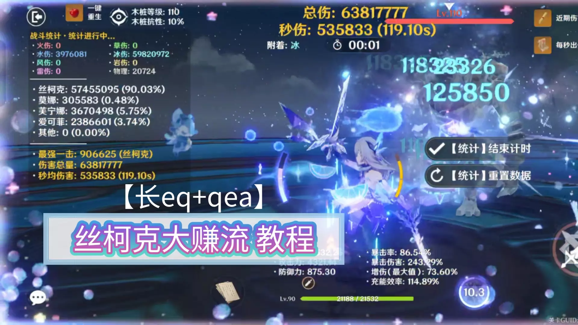 大赚流【长eq+qea】基本原理:丝柯克长eq后,q冷却15秒,e冷却8秒,过后的第8秒长e,第15秒q,第16秒点e进入冰附魔普攻。 qea的普攻阶段,看着q…