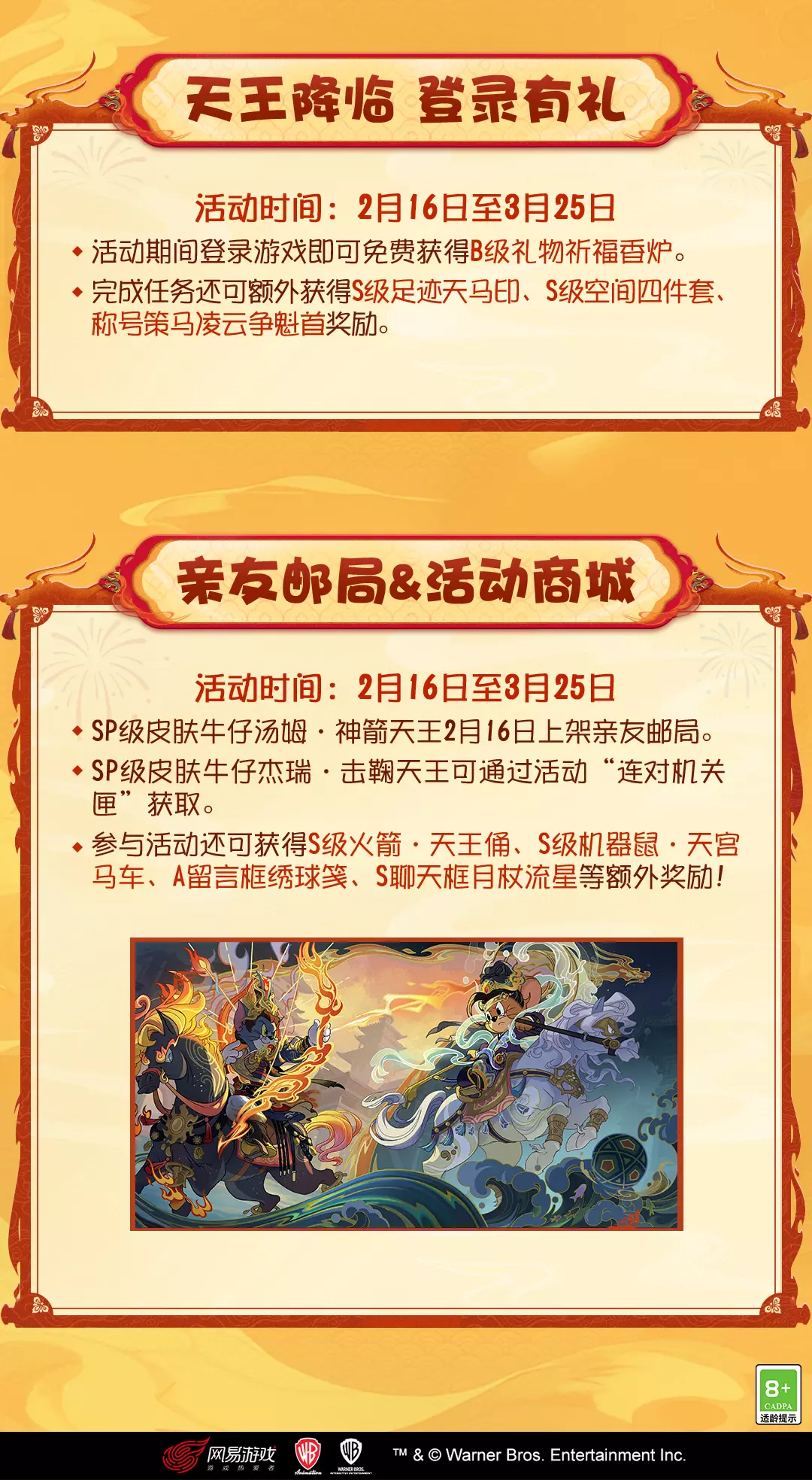 年意渐浓,万象焕新。猫和老鼠手游2026新春版本即将开启!全新角色登场,春节主题活动上线,参与即可赢取丰厚奖励!猫鼠乐园新春焕新,登录即享佳节豪礼!更有马年全新SP级皮肤上线,与您共赴新程!