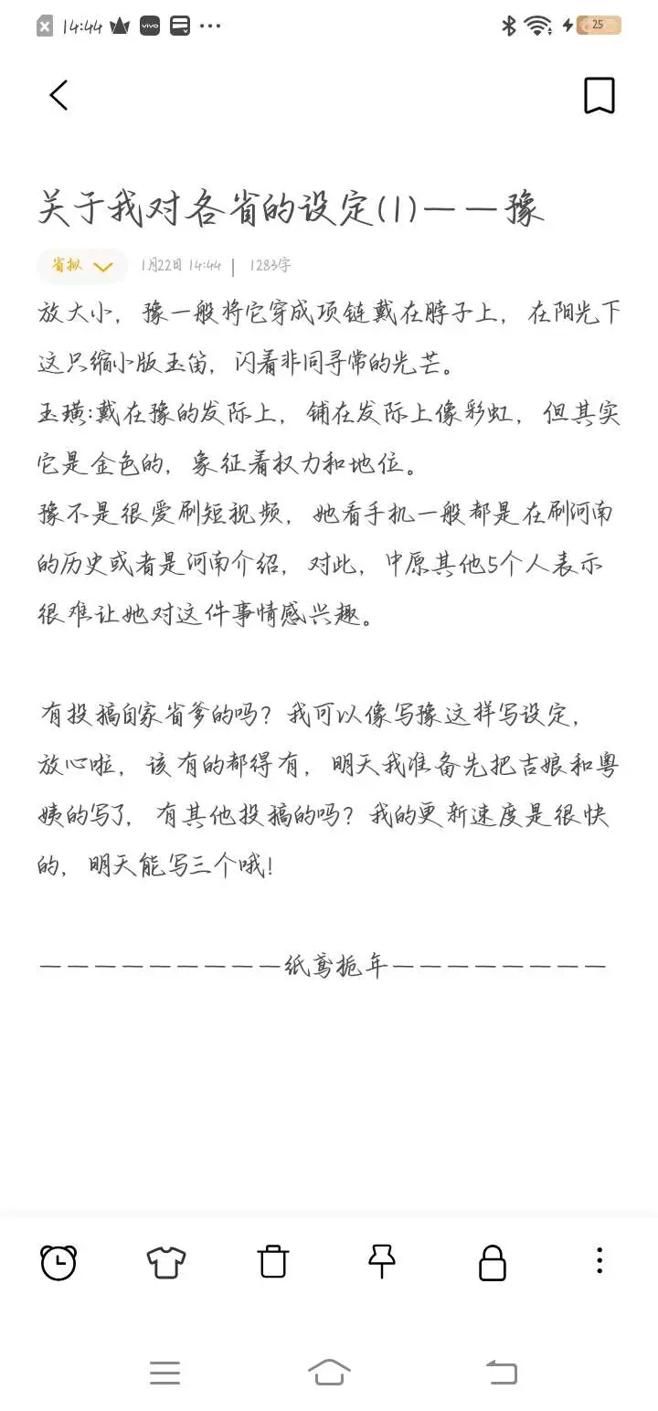 今天我把豫姨写了哦,有小豫兔吗?在线等,喵喵喵,今天晚上我要更吉林和广东的设定,那个新开的《红瓷穿蓝瓷》可能要后天才能更新了,有想投稿自家省的吗?在评论区写,我会一一回复的哦, @小邪蝶 @莞晤.M星团 @橙曲橘歌^竹🍇 @†竹筱眠^*奚璃*.竹 @讨厌我就记住我.