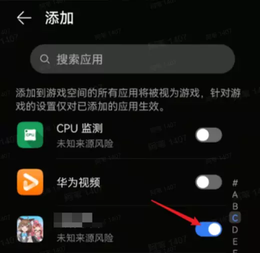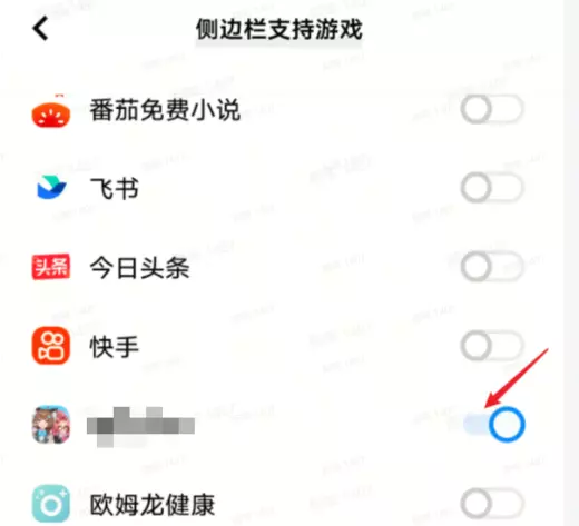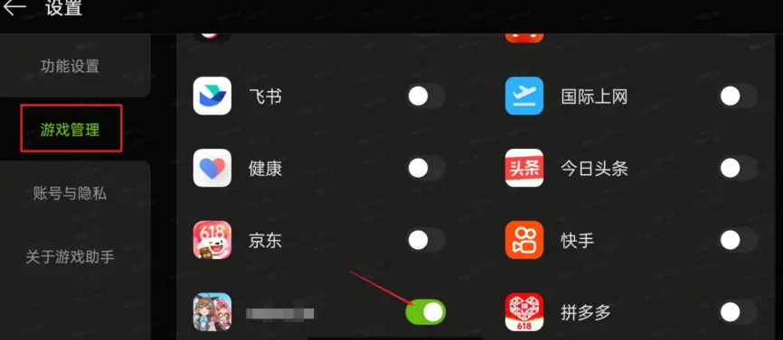 3.打开后找到游戏app,打开开关