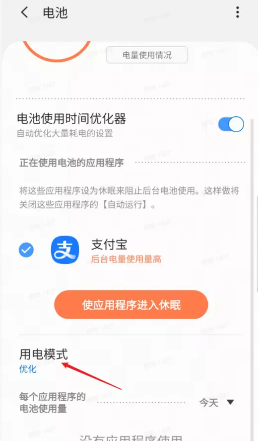 3.进入“电池”后下拉找到“用电模式”