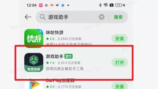 1.软件商店搜索官方软件“游戏助手”,安装并打开