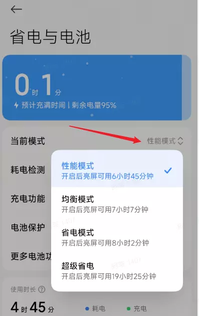 2.打开后把电池模式切换到最高性能的模式