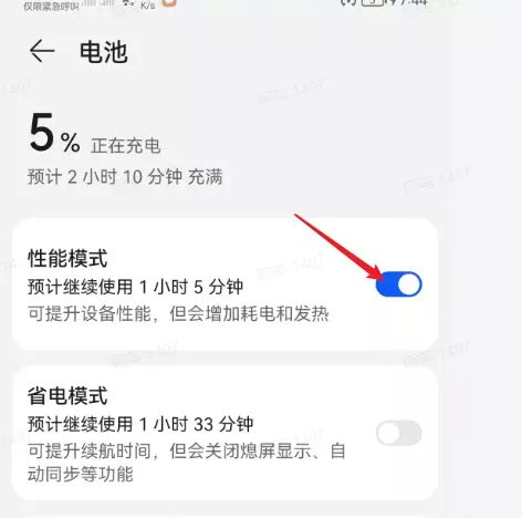 1.前往「设置」>「电池」,打开「高性能模式」开关。