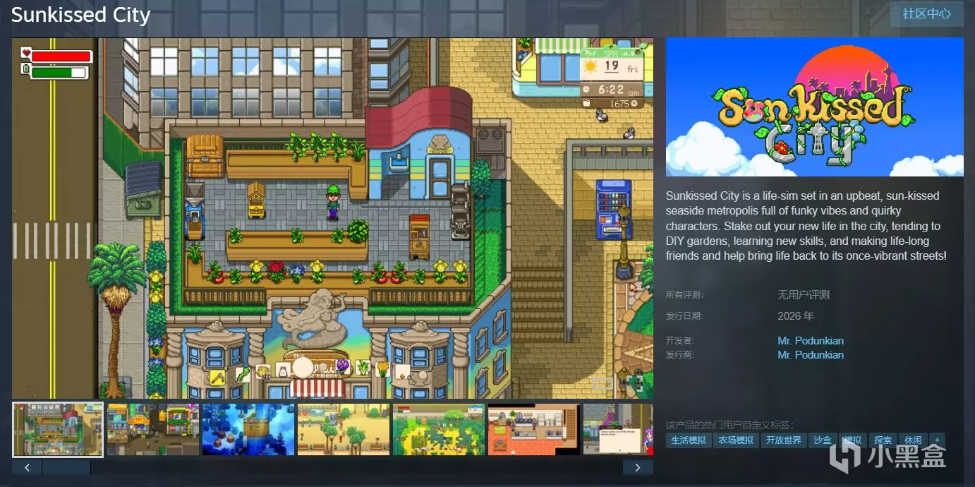 曾负责《星露谷物语》1.5版本更新的核心开发者Mr. Podunkian,其新作《日光之城》(Sunkissed City)最新发售日期已更新为2026,该游戏于24年初公布,原预计24年第四季度推出,但由于未知原因推迟至2026年