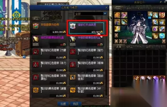 在dnf这款游戏中,徽章镶嵌栏是玩家在西海岸魔法师公会右侧的NPC达芙妮处购买。玩家在NPC达芙妮处购买镶嵌栏开启装置后,在背包中点击使用,选择一件未开启镶嵌栏的装备就会弹出提示,点击确定按钮就可以为装备开启镶嵌栏。