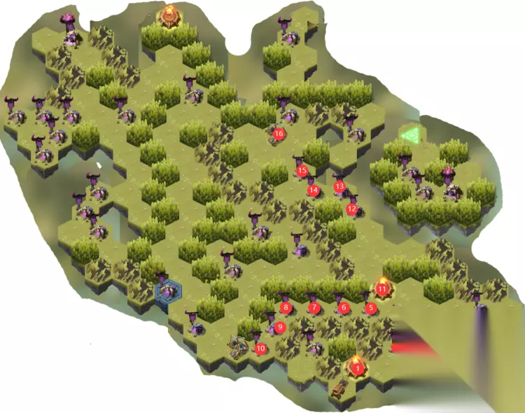 潮汐林地和破碎废墟一样,都是一张必须杀两次的地图。其实就是第二火焰祭坛是否启用的问题。操作难度很低,唯一的难点就是最后一天惩罚boss。 路线图 第一次击杀禁魔boss路线图