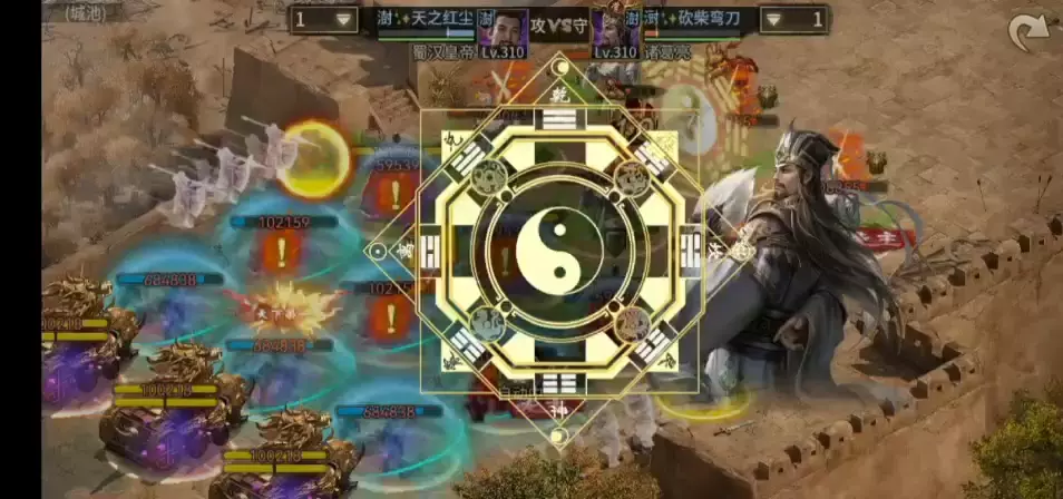 这是游戏《攻城掠地》的七层传奇刘备测试内容,展示了七层传奇刘备在战斗中的技能效果与实战表现,呈现了其在攻城对战中的作战场景。