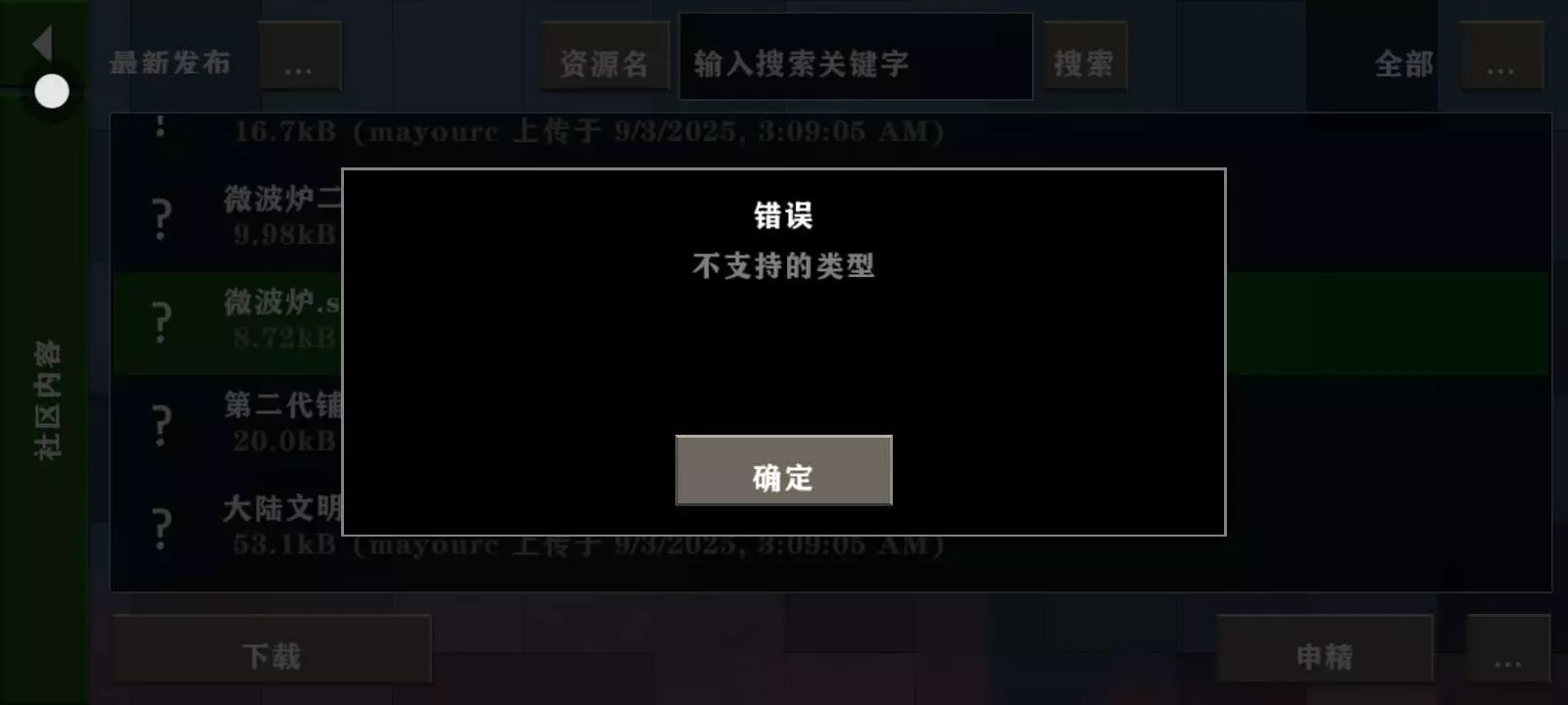 我一直在那边找模组,然后找到了一个经验和物品,不掉落,安装安装成功之后,然后又找了一个呃,那个微波炉的模组安装显示错误,官方,你给我一个解释