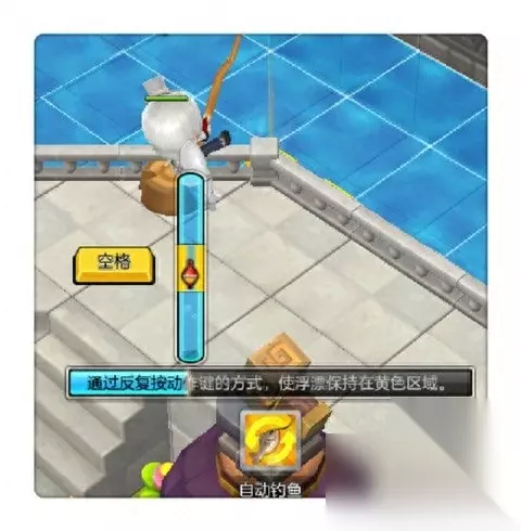 当小鱼上钩之后则会出现一个拉杆波动条。你需要通过反复的按键方式,使浮漂保持在黄色区域。在钓鱼读条结束后则完成钓鱼。