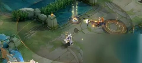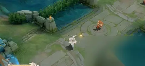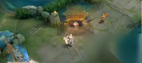 一技能飞攻特效: 一技能释放,棋子顺势而下,在地面会有水墨色彩的晕染伴随着金色的涟漪;