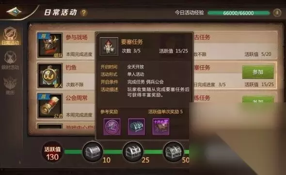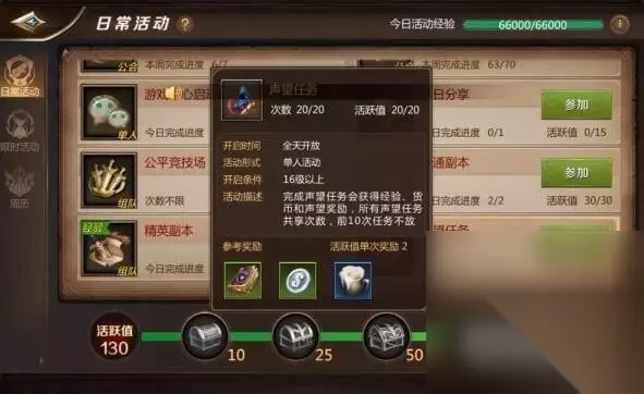 声望任务: 分为2轮,1轮10次任务,获得经验,银币,声望,完成每轮任务有概率获得金币等各种奖励,声望主要用于在声望商店购买随从,要塞任务需要随从完成。