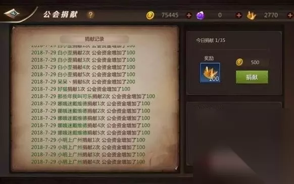 工会玩法刷金: 每日捐献帮贡有四次机会开启工会宝箱,有很大概率直接获得金币奖励。