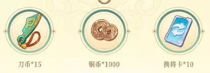 当队伍成员满后即可获得刀币*15+铜币*1000+换将卡*10
