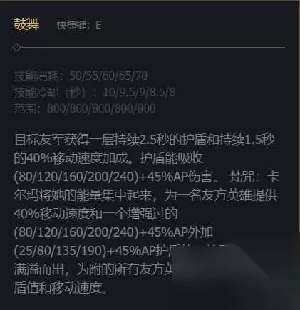 IaN 2、E技能是给队友套个盾,以及让队友获得移速加成,有焚咒的情况下,护盾和移速加成都会提升。IaN