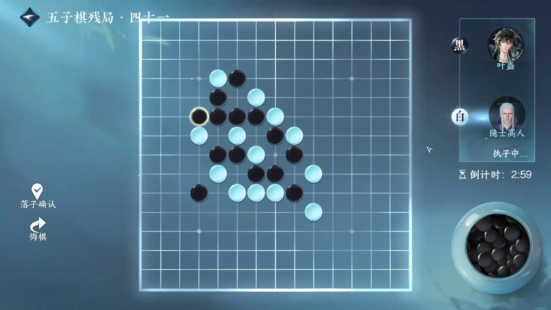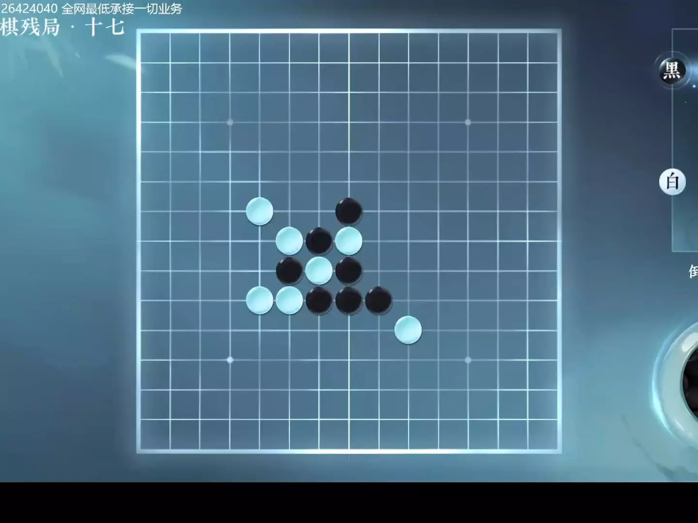 这是逆水寒手游游历玩法里的五子棋残局六,玩家将与棋圣对弈,图中展示了对弈前的剧情场景、残局棋盘以及游历玩法地图,呈现了该五子棋残局的相关内容。