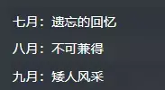 七月:遗忘的回忆,让我们一起寻找那些被遗忘的美好! 八月:不可兼得,在这个月里做出你的抉择吧! 九月:矮人风采,矮人的主题幻化和奖励等你来拿!