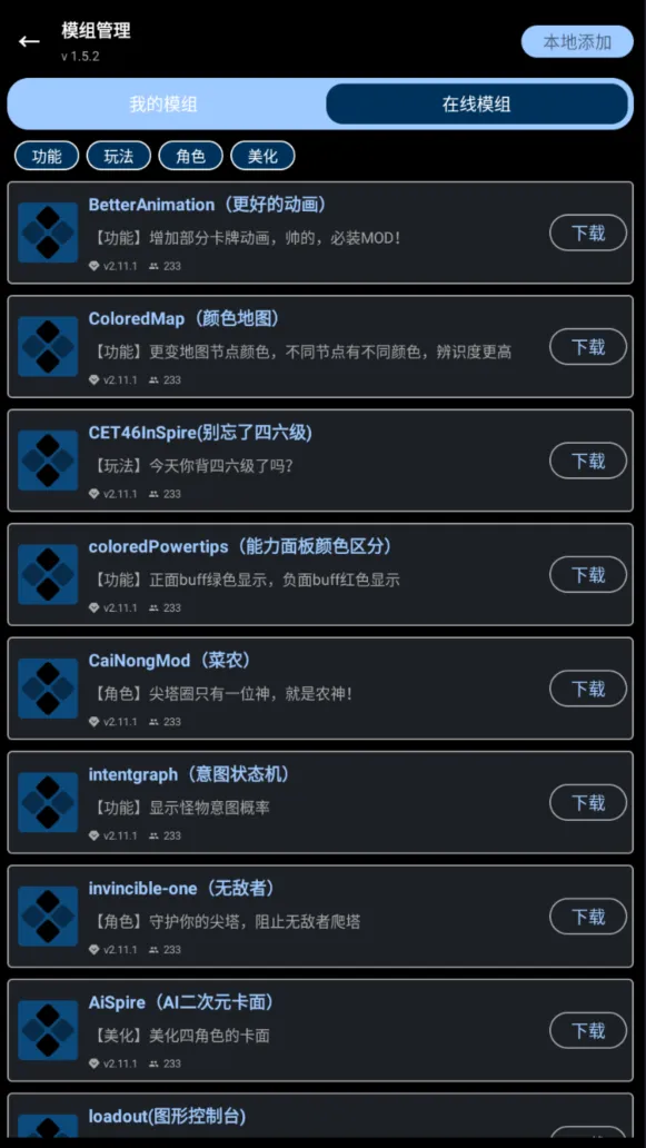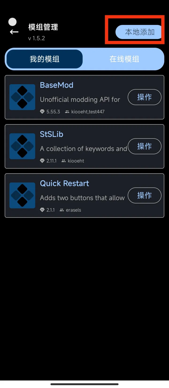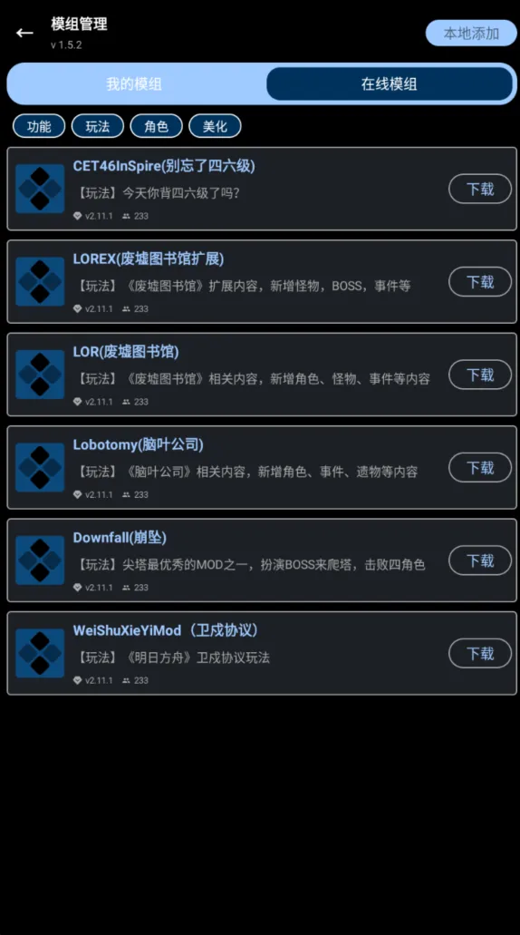 依旧是模组管理界面,点击右上角的本地添加