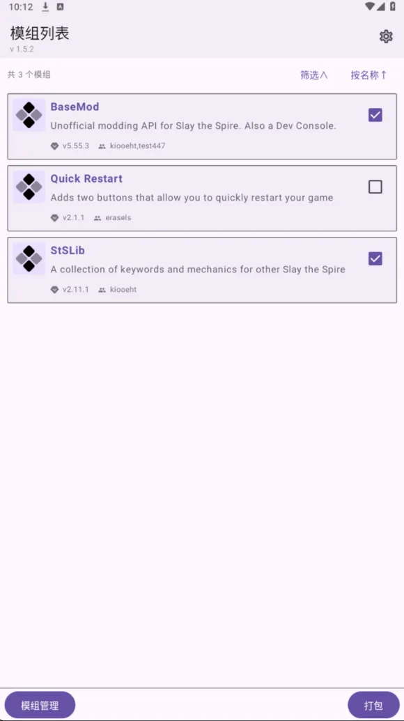 选择你想玩的MOD全部勾选上,点击右下角打包