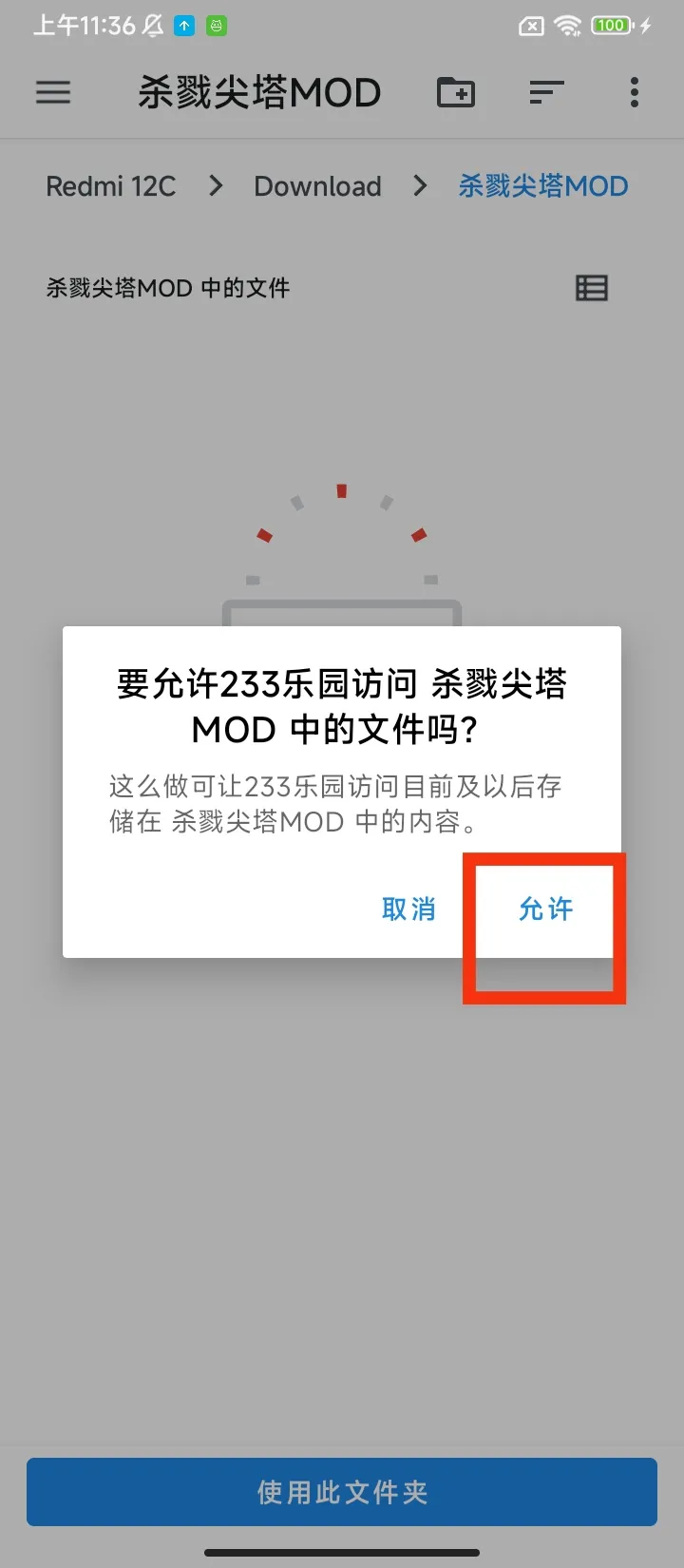 点击允许,不然启动器读取不到你的文件