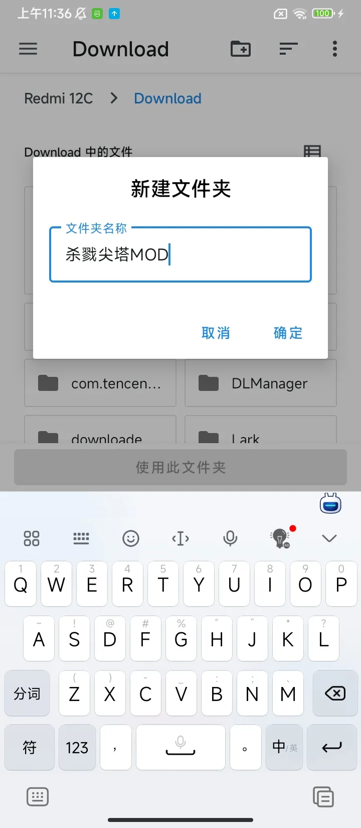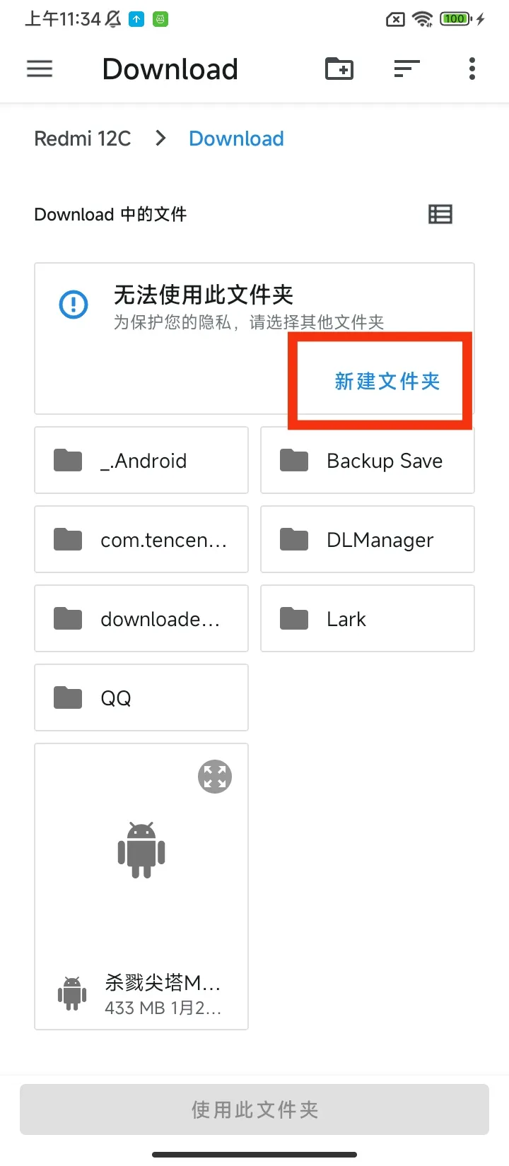 进入文件管理器,选择一个你记得住的路径,比如我这里选择了系统里的Download文件夹,点击新建文件夹