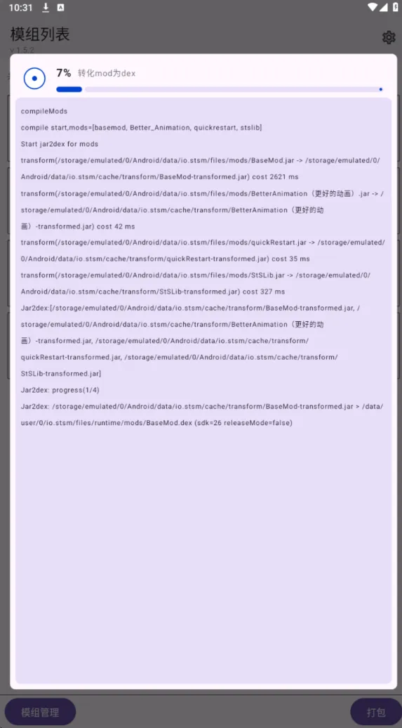 点击左下角的模组管理进入子页面