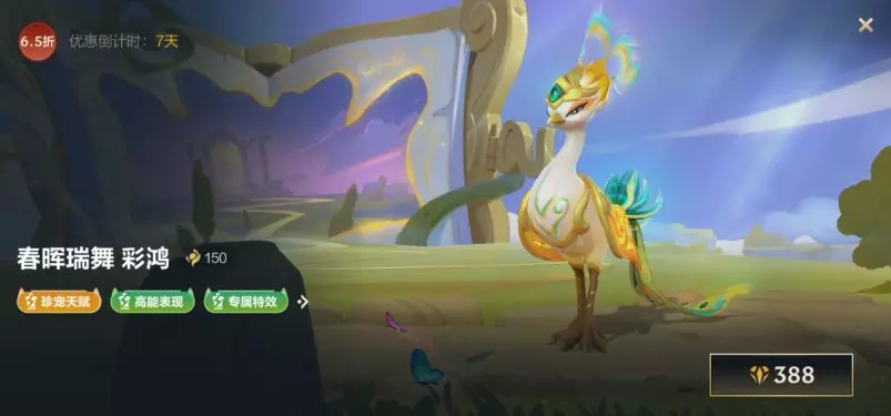 春晖瑞舞 彩鸿今日登陆战利品系统!即日起至1月28日,首周享6.5折优惠,使用橙色原石*388即可拿下~