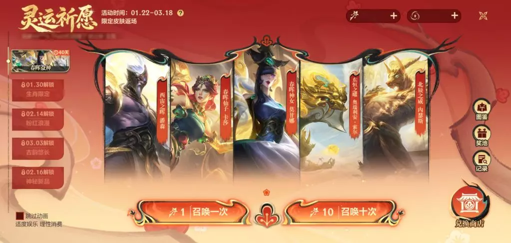 往期春晖众神系列皮肤限时返场