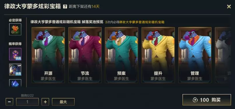 即日起至2月4日23:59,律政大亨蒙多炫彩宝箱限时上架商城,心仪的召唤师可前往进行购买。