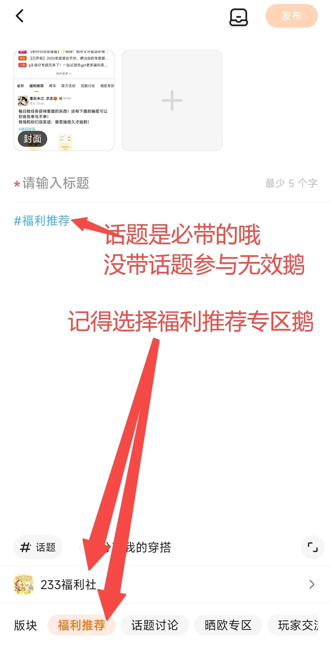 ①带上话题 #福利推荐 发布帖子到游戏圈233福利社【福利推荐】专区