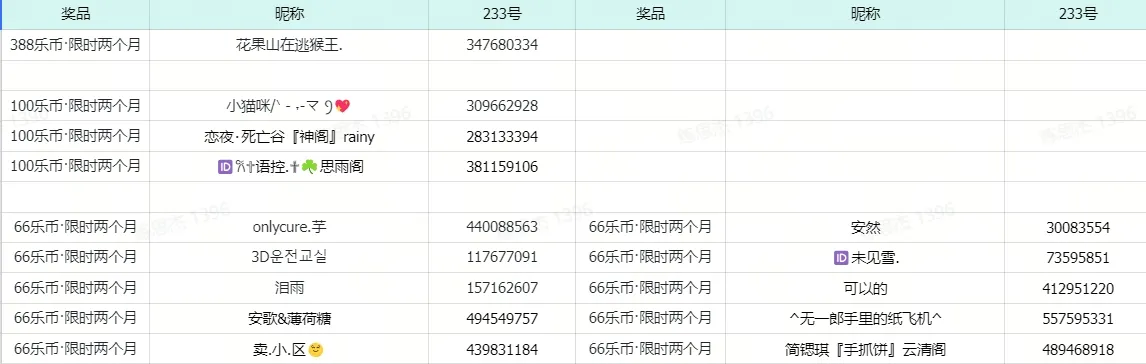 (2)乐币奖励:乐币将在公示期结束后15个工作日内发放至对应乐园账户,届时请注意乐币账户变化