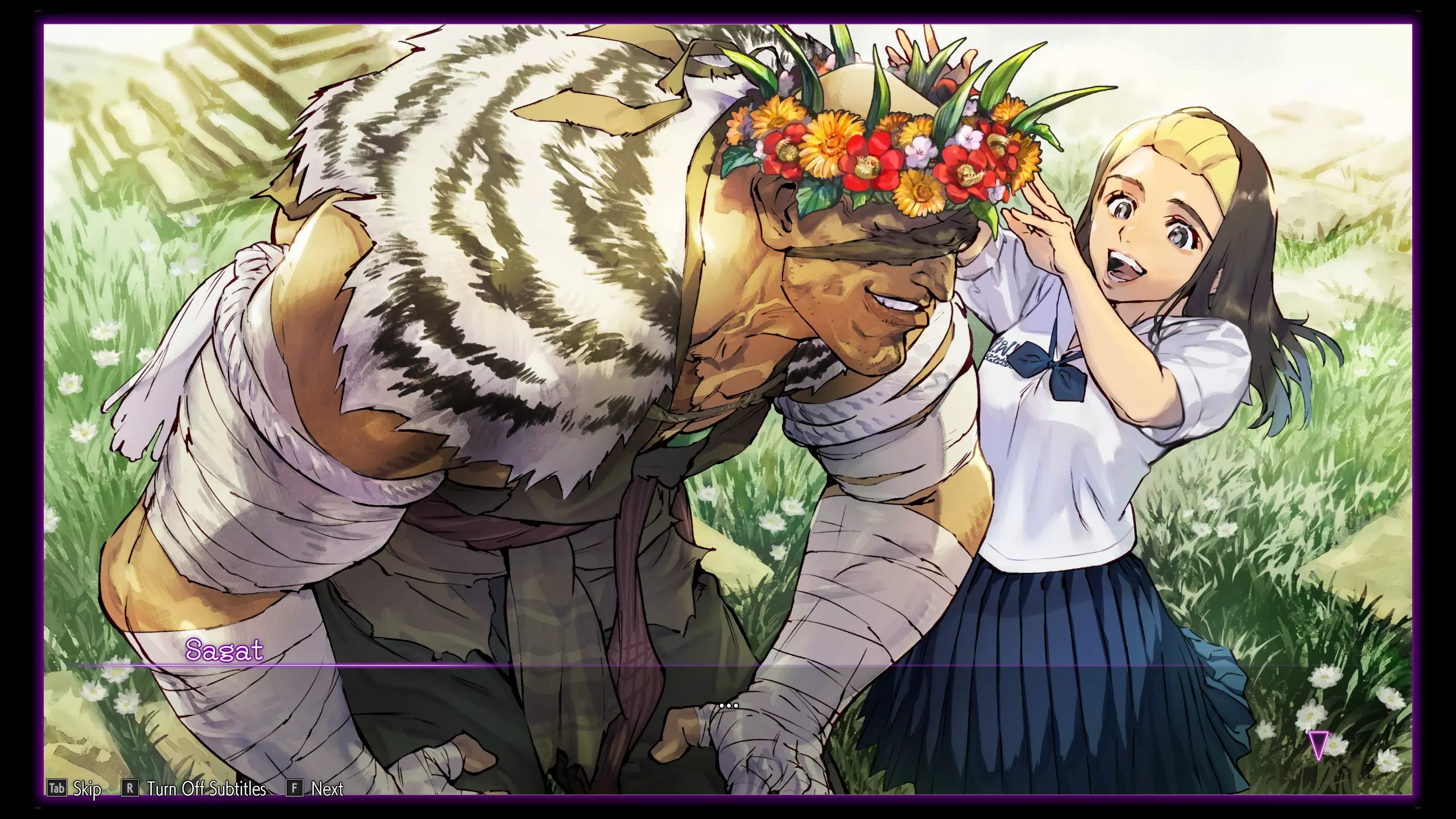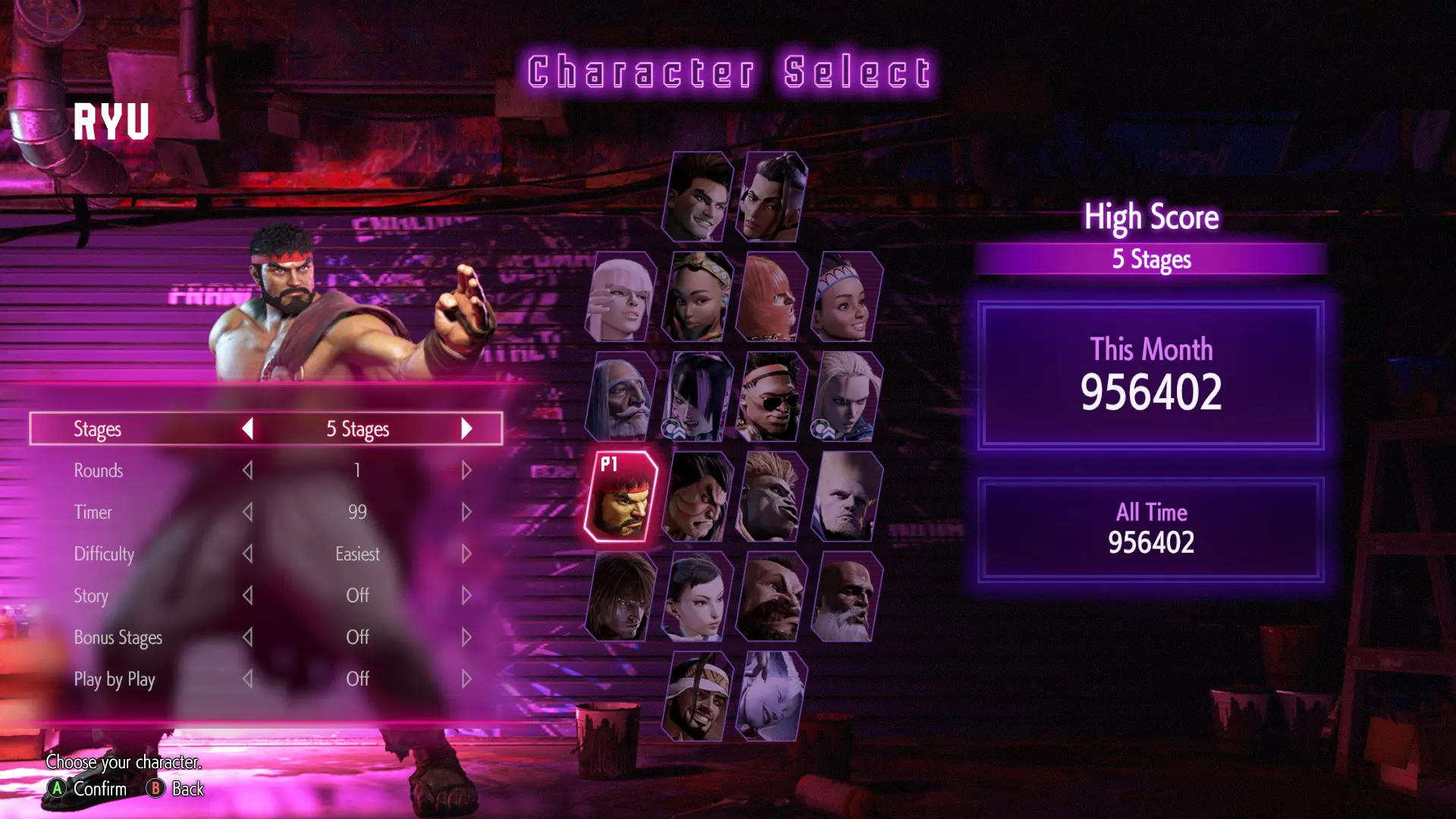 完成后,您需要选择一个角色并完成此模式总共三次。然后需要对游戏中的每个角色重复这个过程。 如果你想节省时间,我推荐以下方法:将阶段数量减少到5个,将回合设置为1个,并选择Easiest作为你的难度。更重要的是,在第一次使用角色完成街机后,你可以在未来的游戏中禁用角色的过场动画和奖励阶段(尽管额外的战斗将取代奖励阶段,所以由你来决定两者中哪一个更快)。请注意,过场动画和奖励阶段可以通过将故事和奖励阶段切换为“关闭”来禁用,这可以在选择角色和服装后完成: