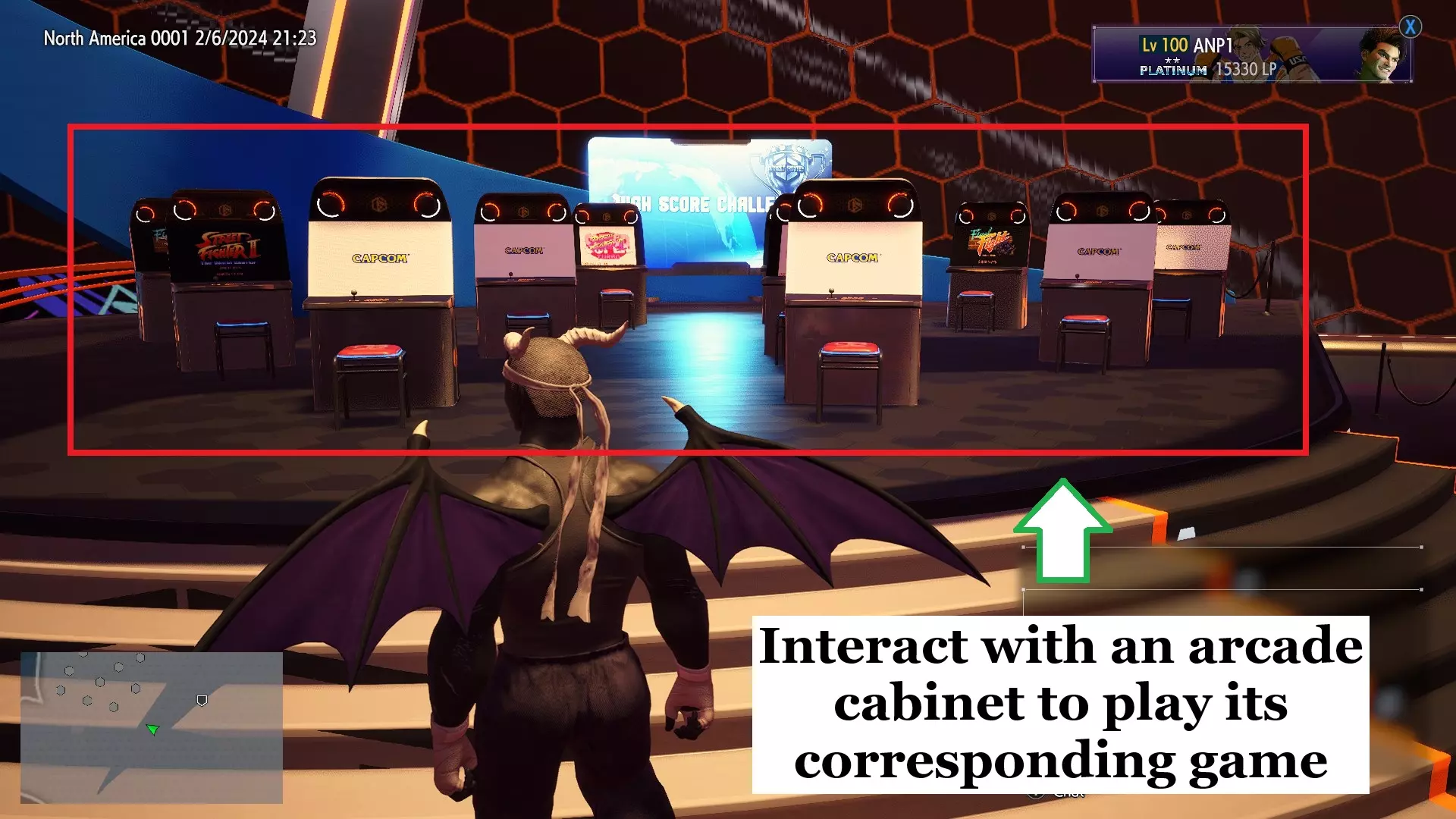 你会发现许多街机柜排列在一起,当与之互动时,你可以玩目前可用的任何游戏: