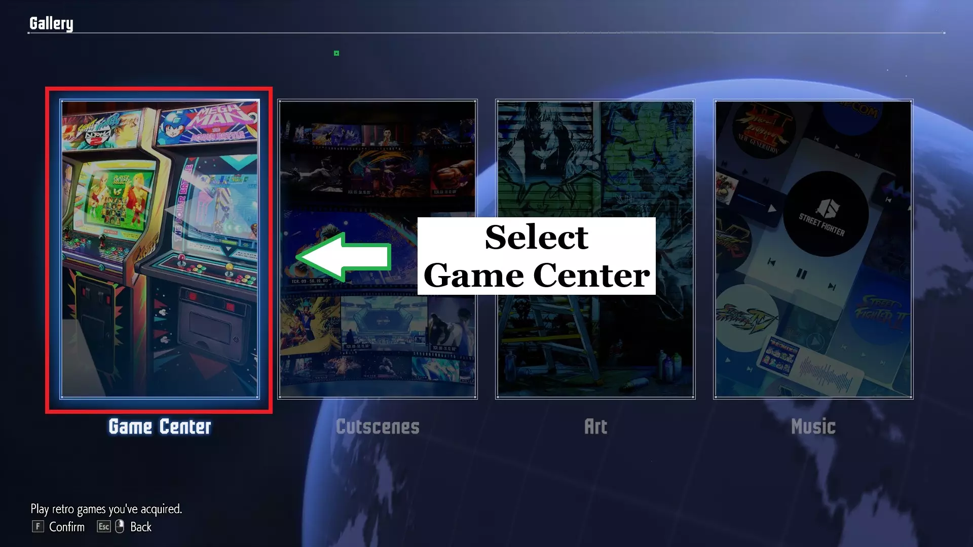 最后,您可能想仔细阅读下表,具体了解哪些游戏是每日、每周或每月的;然而,它可能不是完全准确/最新的,所以请记住这一点:游戏标题频率突击队队长每月最终战斗每月食尸鬼不确定,但我认为它是每月*传奇之翼每日魔剑每日巨型男人:权力战斗每日侧武器每日松森每日街头霸王每周街头霸王阿尔法2每周街头霸王II每周街头霸王II:超级战斗每周超级益智霸王II涡轮每日超级街头霸王II涡轮每周Vulgus每日*这可能仅在有限的时间内提供。 如果这个或频率不对,请告诉我 还有一种额外的方法可以用来解锁战斗中心的艺术品。为此,请从多菜单导航到图库,然后选择游戏中心。在此部分,您可以玩任何您已经解锁的街机游戏:
