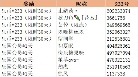 随机抽取5人送出【乐币*233(限时30天)】;