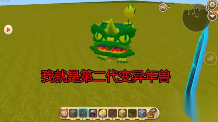 原来这位不断散发光芒的生物,是一位年兽,只是这名年兽与游戏中常见的年兽有所不同,没有变异前的年兽与小时候看的舞师很为相像,颜色由黄色与红色结合,给人一种威武的感觉,而且年兽也只有在春节期间才可遇见,其余时间只有在创造模式中才可召唤。
