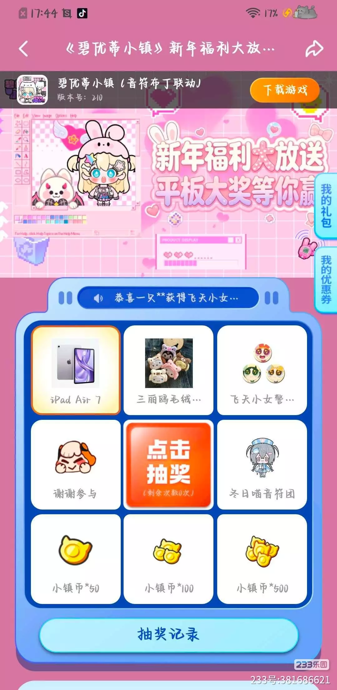 玩《碧优蒂小镇》,有机会领取平板…呀!